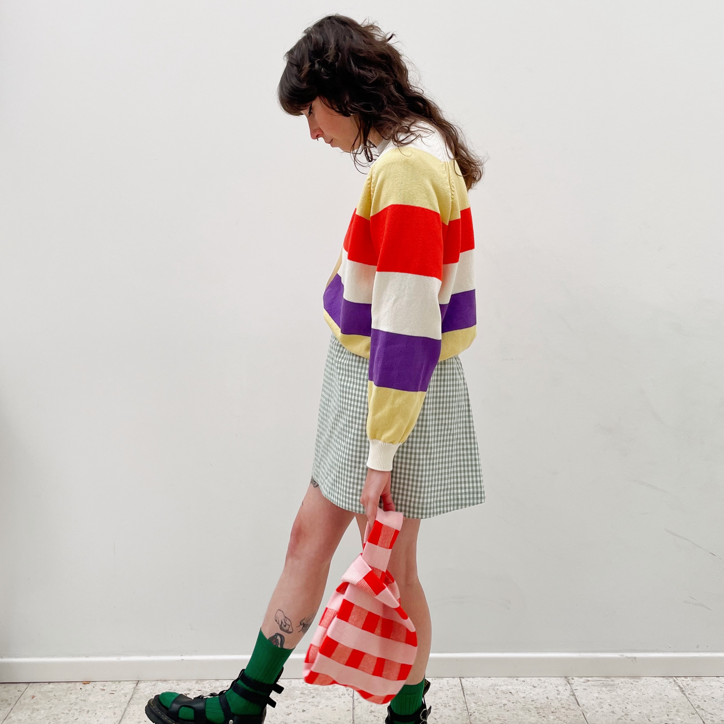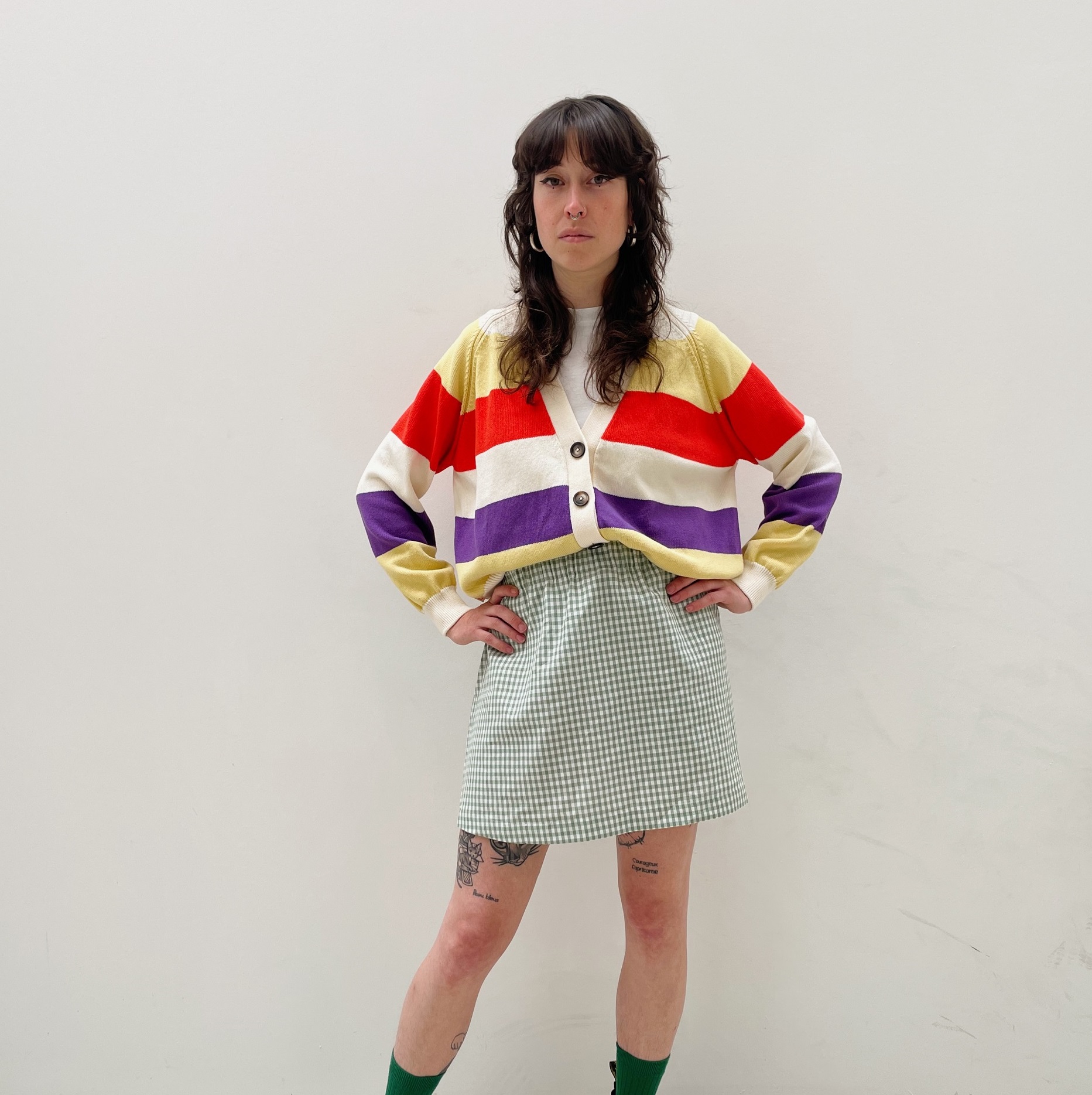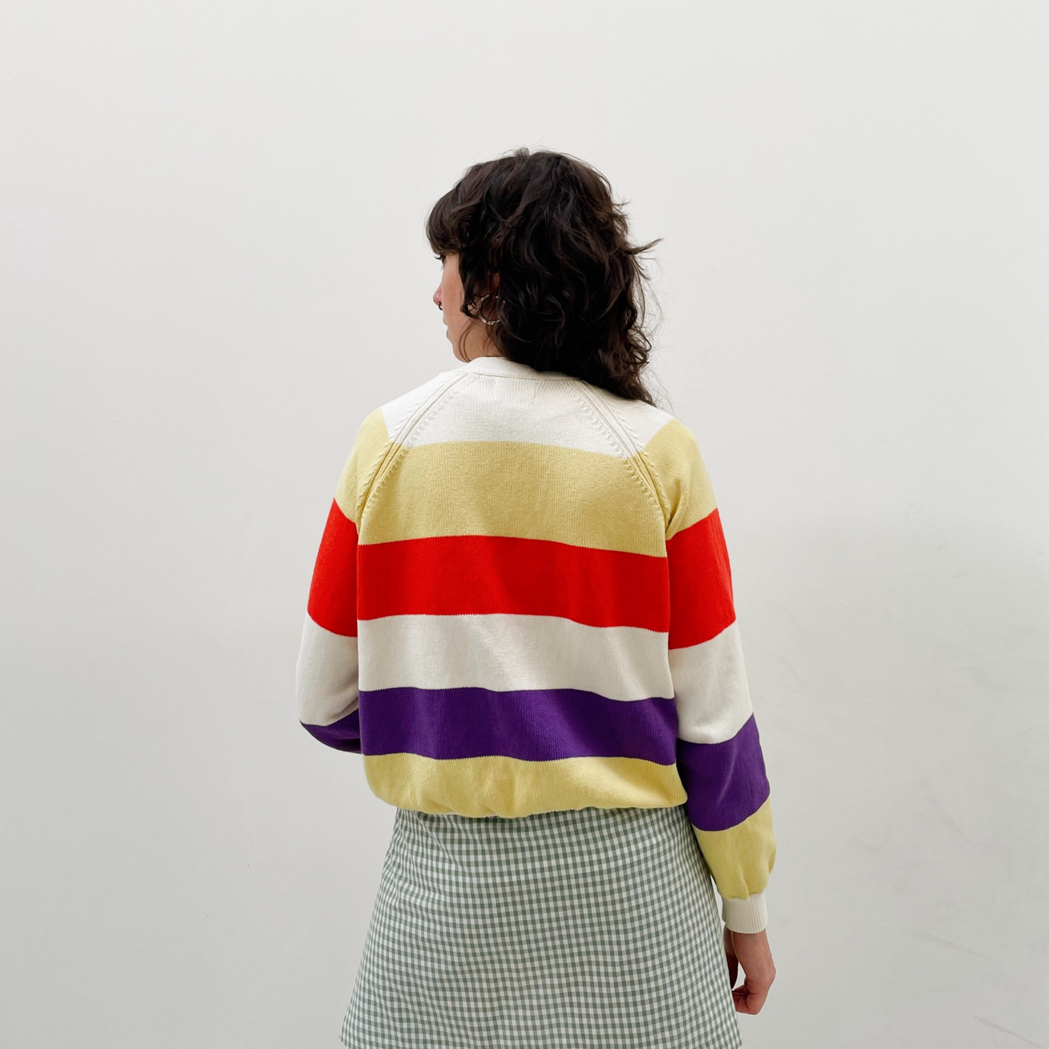 Le gilet Humeur Délicieuse, imaginée par Zoé Mommen, a été produit avec soin dans sa petite usine de tricot à Bruxelles, en Belgique. Le choix du modèle et des couleurs, le tricotage, le lavage, l’assemblage, tout a été réalisé par Zoé et ses machines industrielles : )
